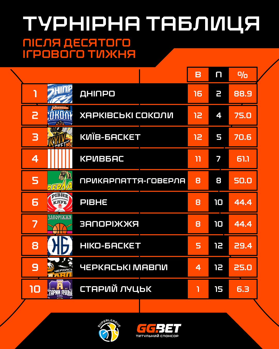 Повна турнірна таблиці Суперліги GGBET