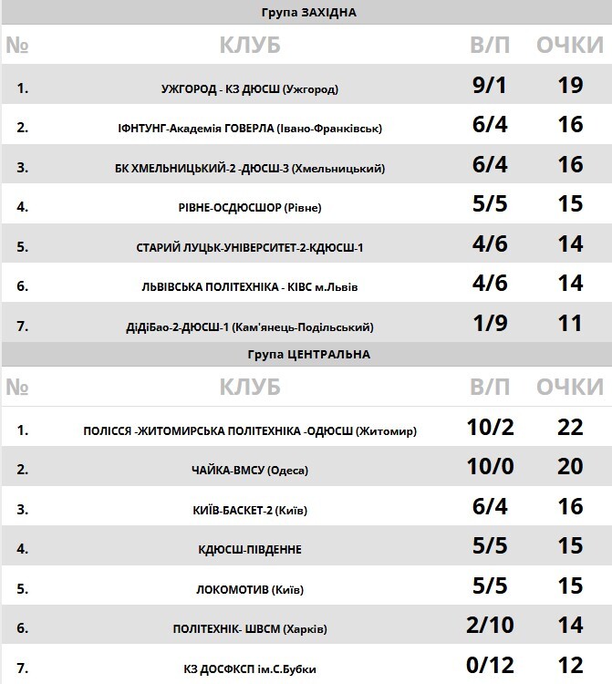 У Центральній групі ситуація трішки зрозуміліша – на минулому тижні в Житомирі три команди вже відіграли матчі останнього туру, Полісся-Житомирська Політехніка-ОДЮСШ гарантувала собі друге місце, першою точно стане Чайка-ВМСУ, тому вакантними залишаються два місця в топ-8, на які претендують три команди.