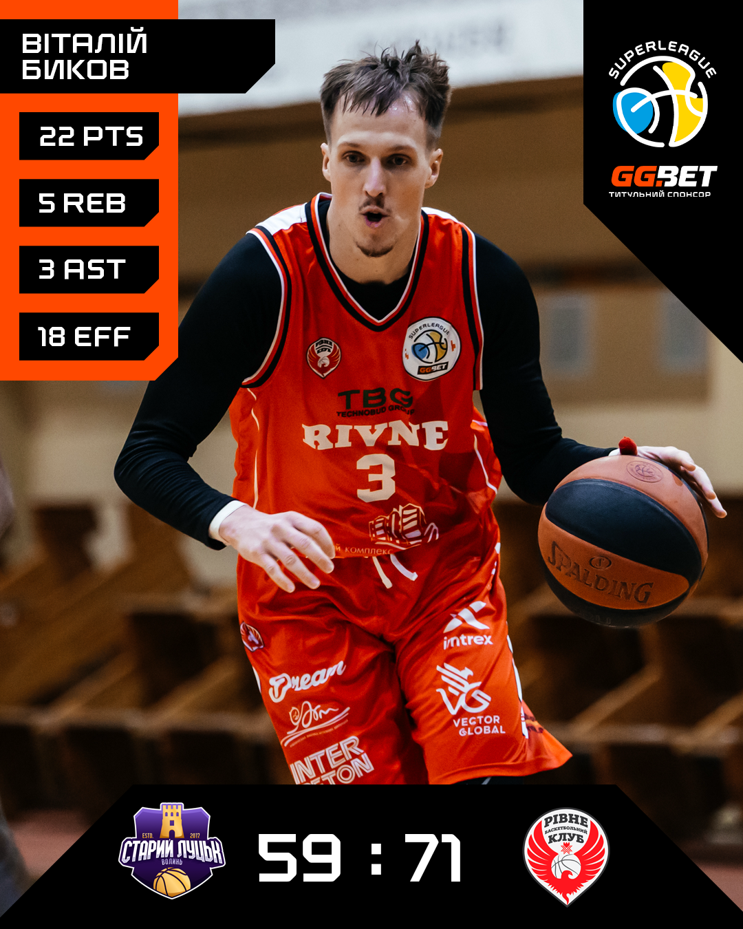 БК Рівне здобув перемогу в матчі регулярного чемпіонату Суперліги GGBET, здолавши Старий Луцьк із рахунком 71:59.