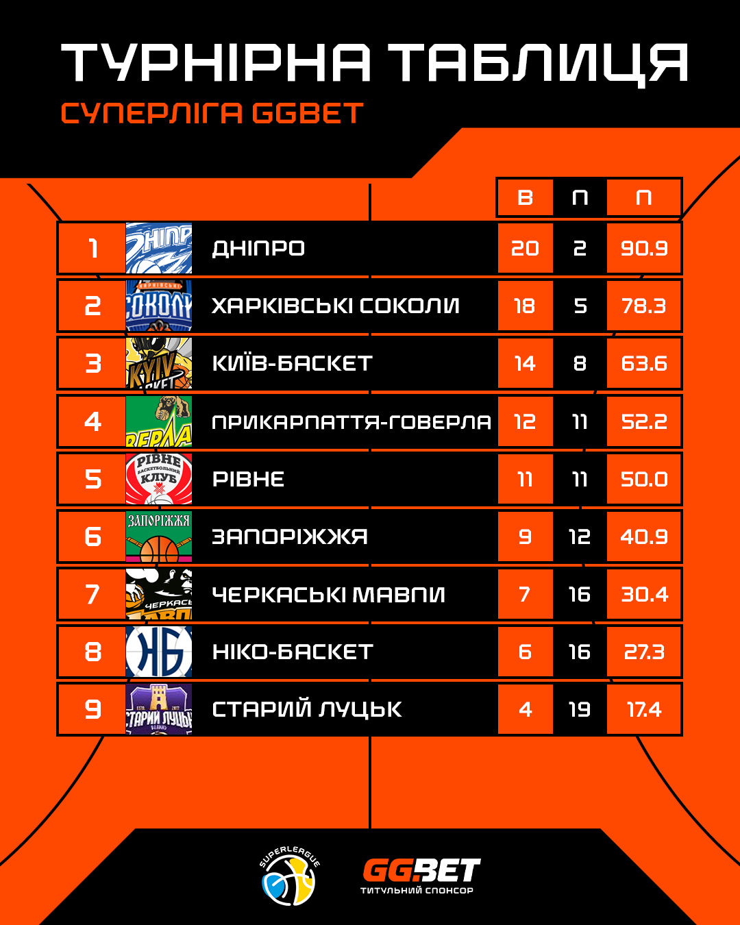 На перших трьох позиціях уже нічого не зміниться – Дніпро достроково став першим, Харківські Соколи точно будуть другими, а Київ-Баскет — третім.