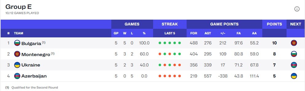 В другому матчі ігрового дня нашої групи Чорногорія вдома впевнено обіграла Азербайджан 94:35.