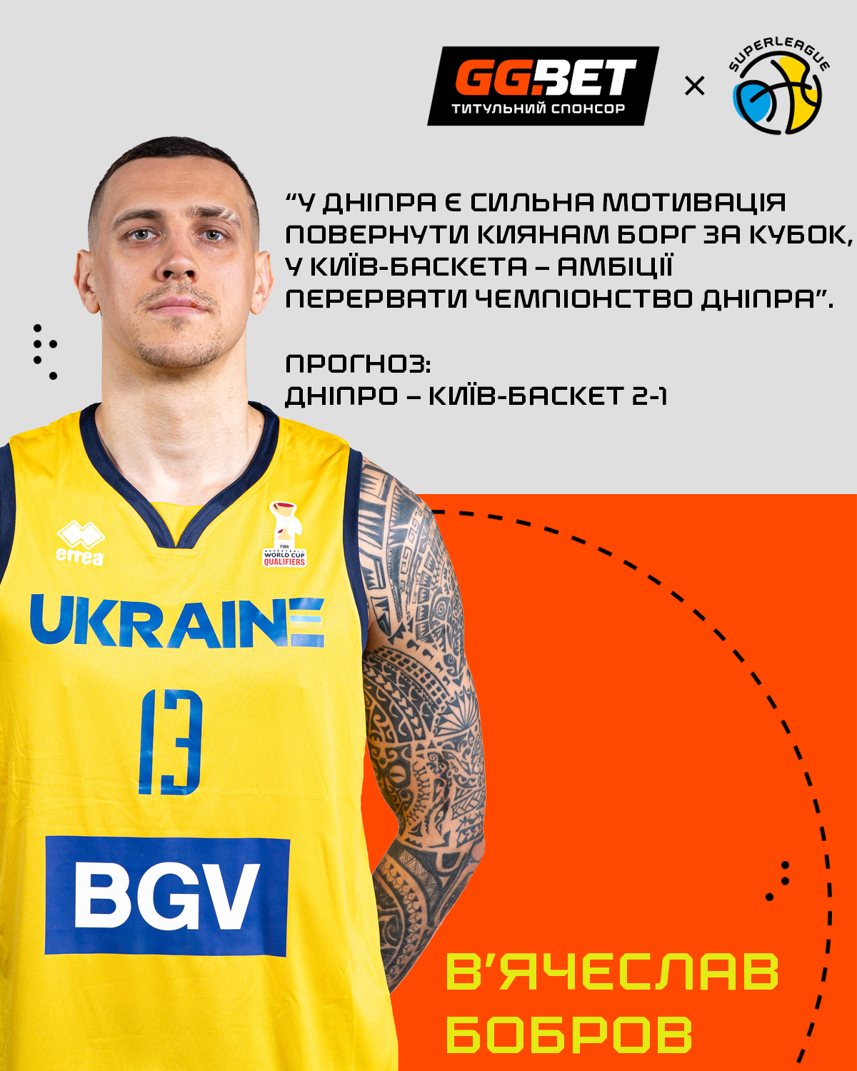 Форвард збірної України Вʼячеслав Бобров поділився своїм прогнозом та очікуваннями від фіналу Суперліги GGBET, в якому Дніпро зіграє проти Київ-Баскета.