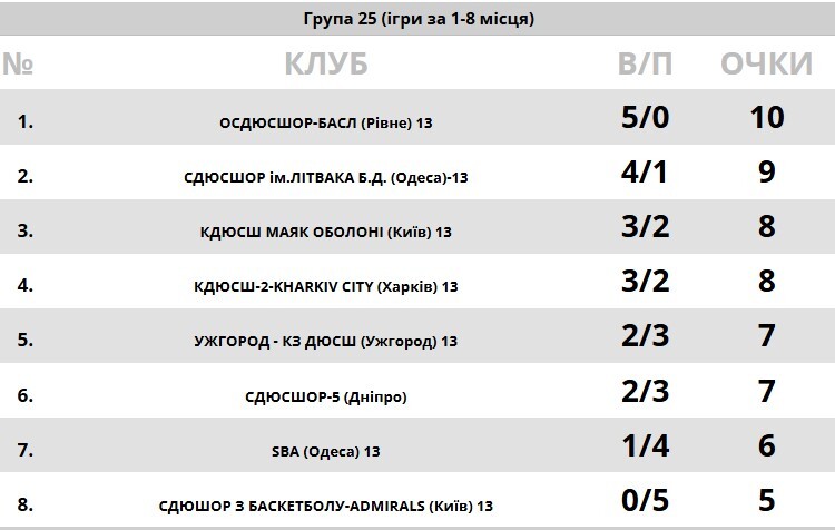 По одному матчі у Києві виграли столична КДЮСШ Маяк Оболоні та дніпровська СДЮСШОР-5, які залишаються в боротьбі за топ-4. А ось господарі туру СДЮШОР з баскетболу-Admirals залишаються на третьому етапі без перемог.