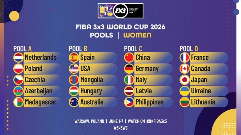 Відбулося жеребкування чемпіонату світу з баскетболу 3х3 2026 року, який пройде у Варшаві (Польща) з 1 по 7 червня.