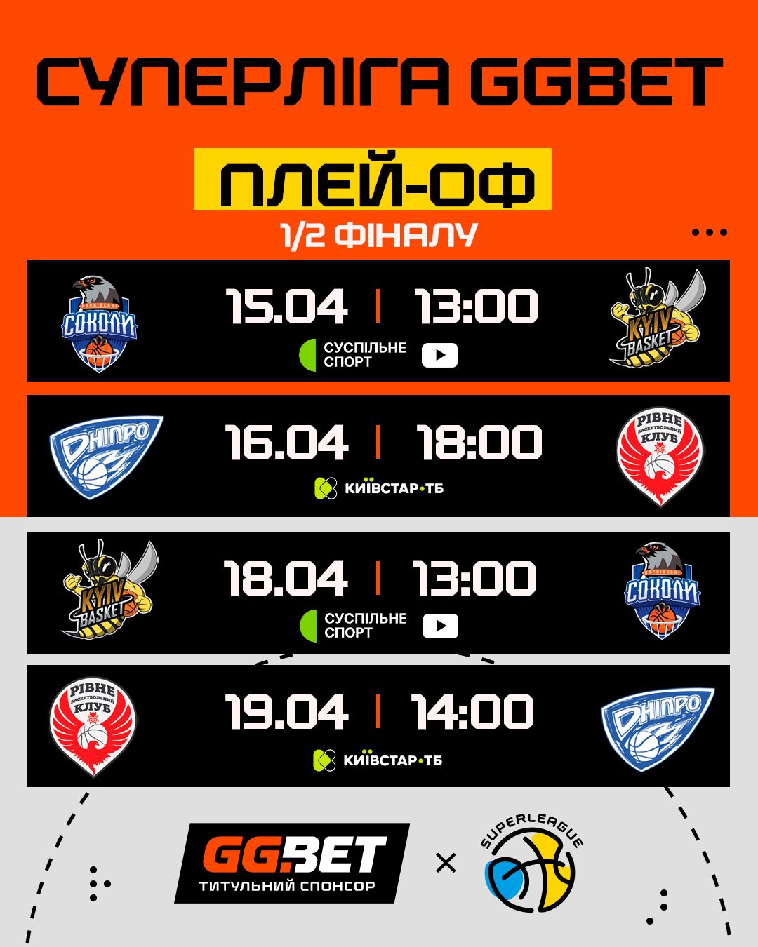 З 15 по 19 квітня відбудуться матчі другого раунду плей-оф Суперліги GGBET.
