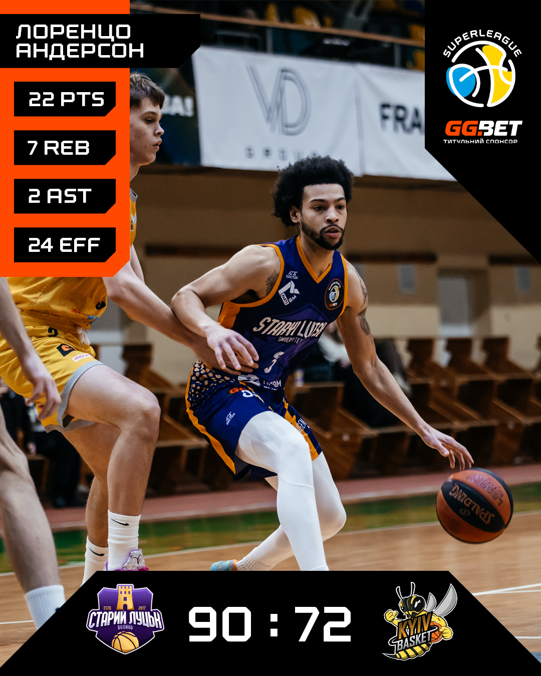 Старий Луцьк здобув перемогу в матчі регулярного чемпіонату Суперліги GGBET, здолавши в Івано-Франківську Київ-Баскет — 90:72.