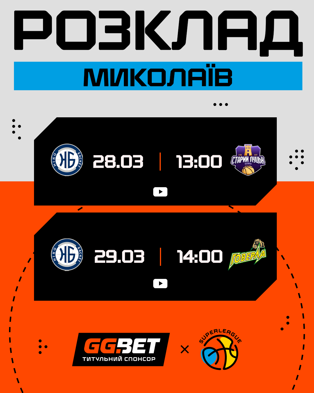 Із пʼятниці по неділю 27-29 березня в рамках регулярного чемпіонату буде зіграно сім матчів останнього туру Суперліги GGBET. Зустрічі відбудуться в Дніпрі та Миколаєві.