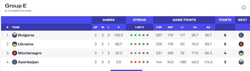 Після трьох турів лідером групи є збірна Болгарії, яка виграла всі свої матчі. Україна з двома перемогами посідає друге місце та випереджає Чорногорію і Азербайджан.